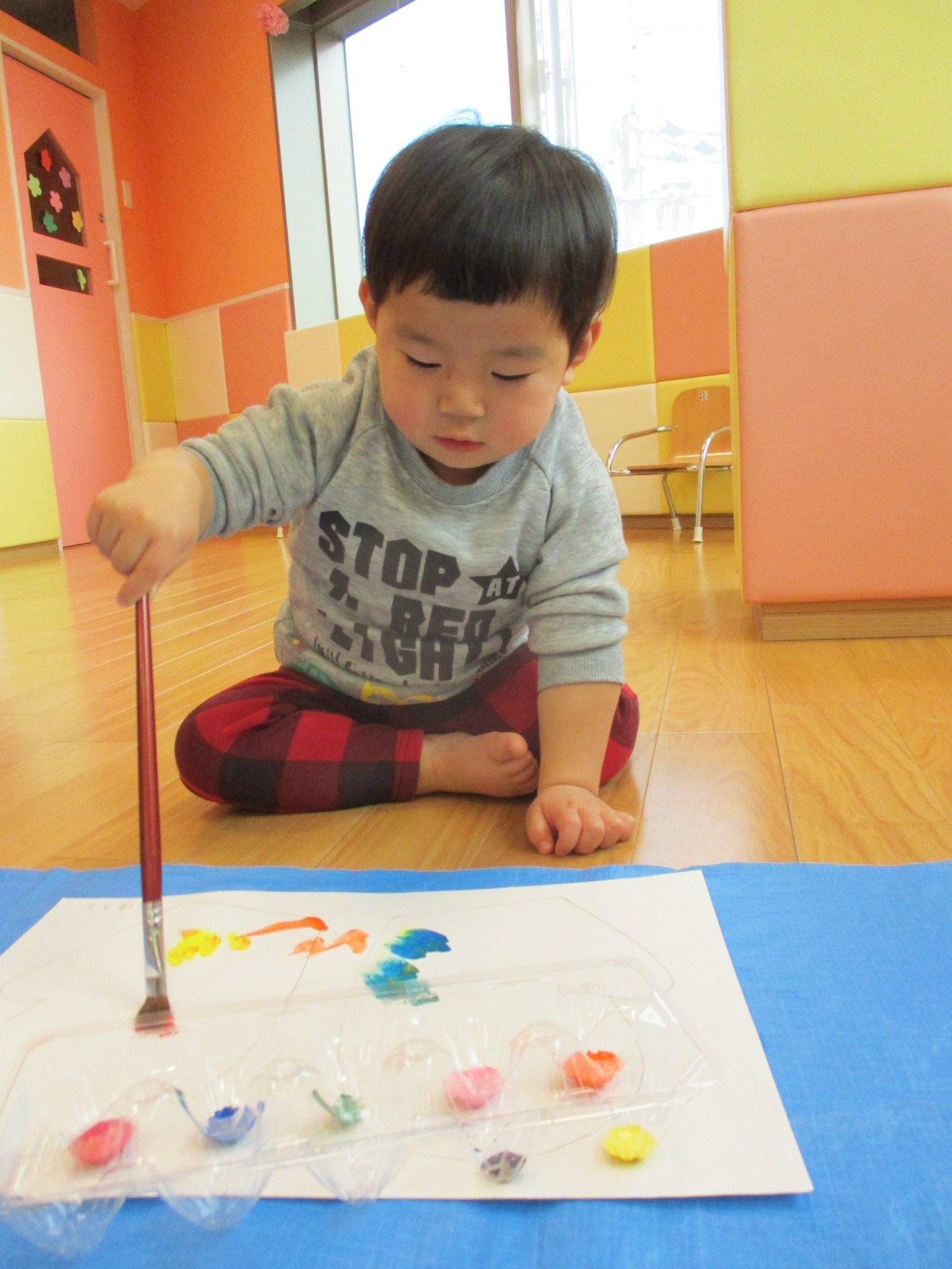卵パックに、色々な色を用意しました ![]()