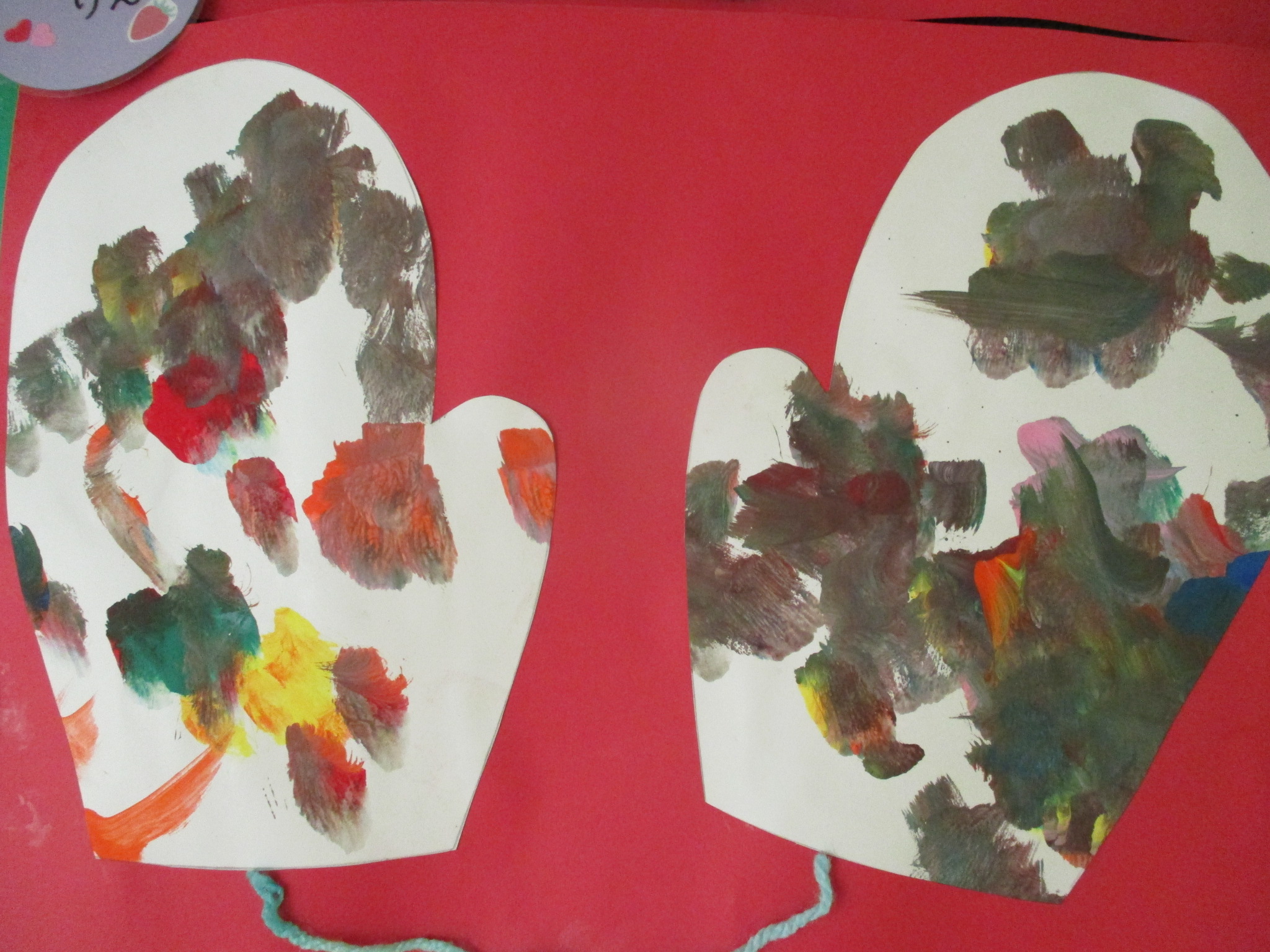 最後はその手袋を画用紙に貼っていきました ![]()