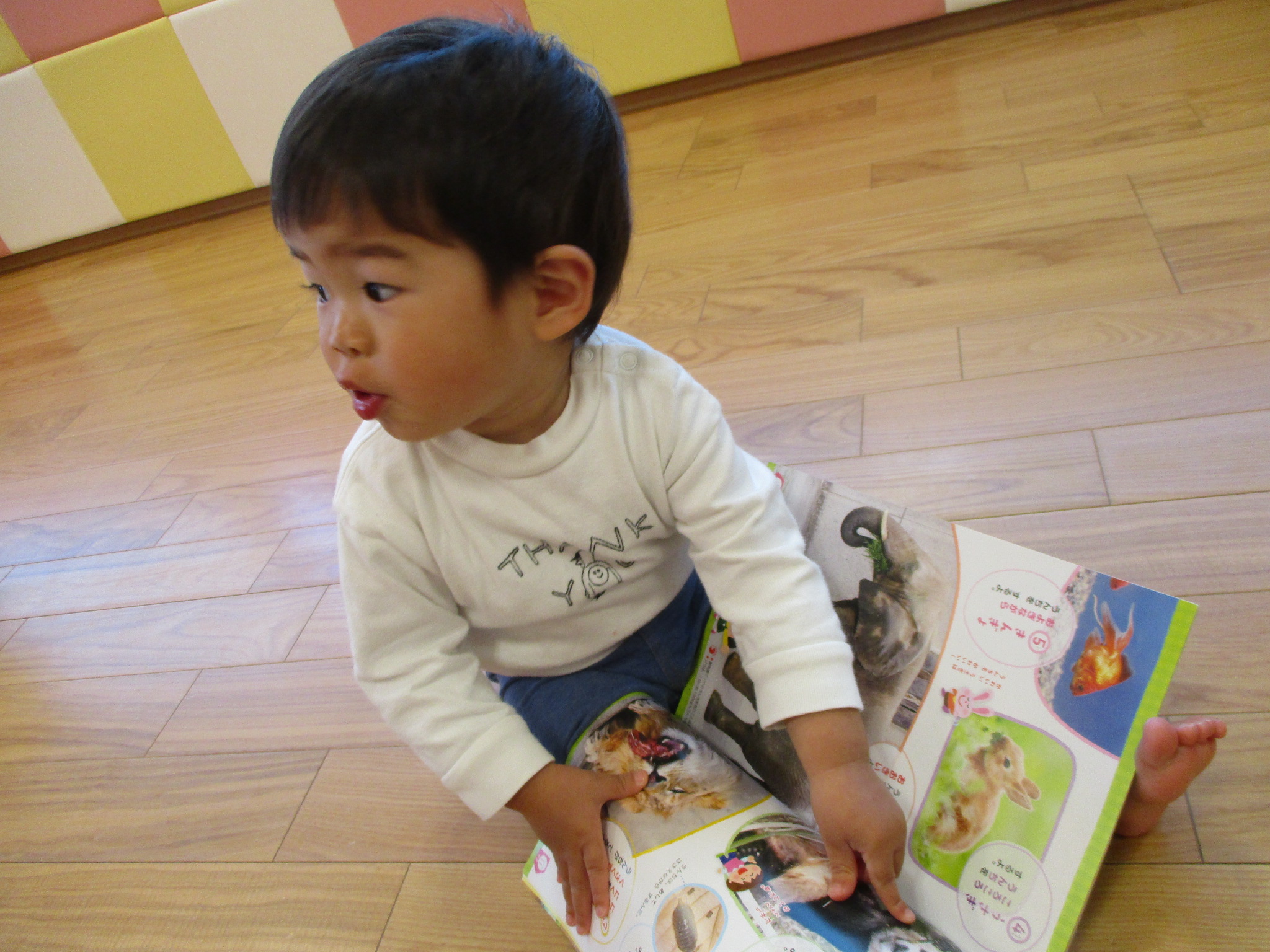 保育園のおもちゃや壁面、ピアノの音に興味を示してくれています??