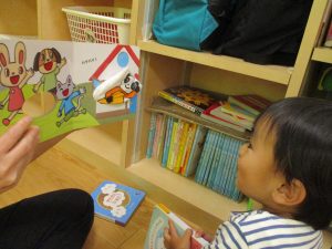 仕掛け絵本に釘付けですね