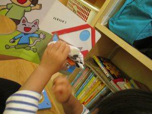 絵本の裏表紙から手を入れられる様になっています![]()