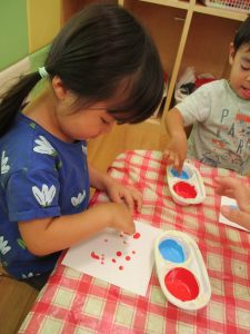 白の画用紙に指スタンプをしていきます?✨