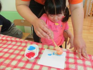 手に沢山絵の具が付いても気にせずトントン