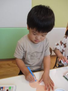 ペンも上手に持てているリンゴ組さんです