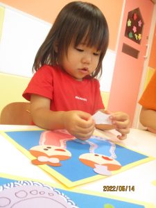 そしてお洋服にノリでお顔を貼っていきます