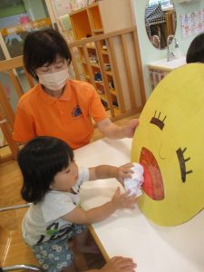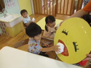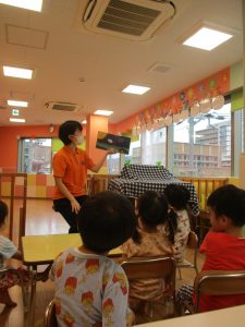 まずは絵本を見て、お月見のお話を聞きました👂