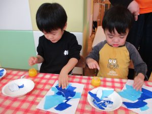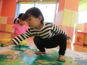 足に絵の具がいっぱいついてもへっちゃらだよ![]()