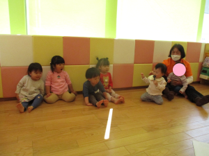 いちご組さん🍓もりんご組さん🍎と一緒に座りますよ🌟