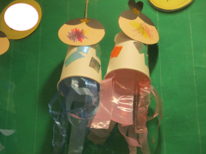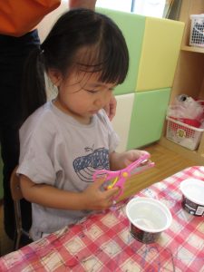 そしてその切った折り紙は紙コップに貼っていきましたよ![]()