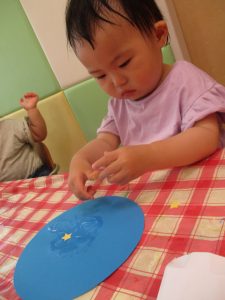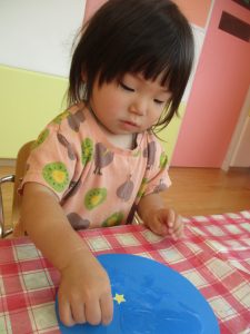 手型の後は目や口のシールを貼りました![]()
