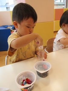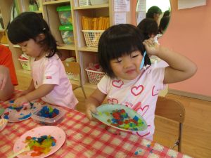 カラフルな寒天にみんな興味津々👀![]()