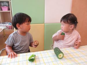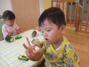 野菜の感触、匂い、色々感じて、