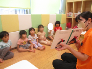 【おいかけっこ】という絵本の読み聞かせ風景です📸