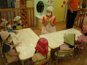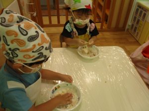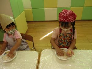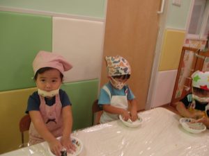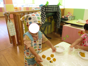 さて、今日のブログはりんご組のクッキングの様子を