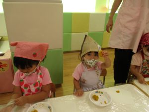 自分たちで作ったカボチャのクッキー〇
