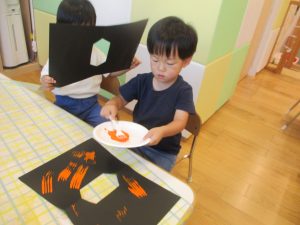 仮装する衣装(帽子)製作の様子をお届けします![]()