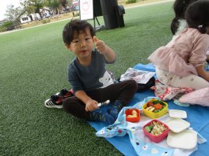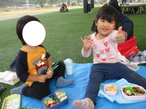 みんなでお外で食べるのも楽しいね![]()