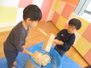まずはおなじみのお餅つき!!!