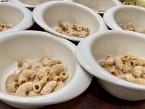 週始まりの月曜日、外は曇りや雨模様ですが、子どもたちは元気いっぱい笑顔で登園してきてくれました。仲良くなったお友達と一緒に食べられる給食も残り数日です!子どもたちは、給食の時間もおやつの時間も楽しくおしゃべりしながら食べていました。
