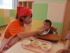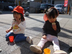 お天気の日には、お外でおやつを食べたよ(^^♪