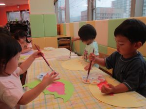 傘全体に色を塗るお友だちも‼☂☂![]()
