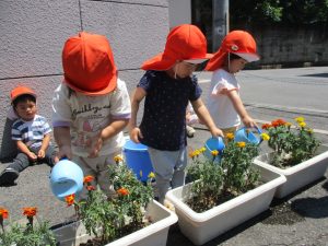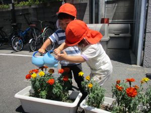 ジョーロに水をくむのも、お花にみずをあげるのも