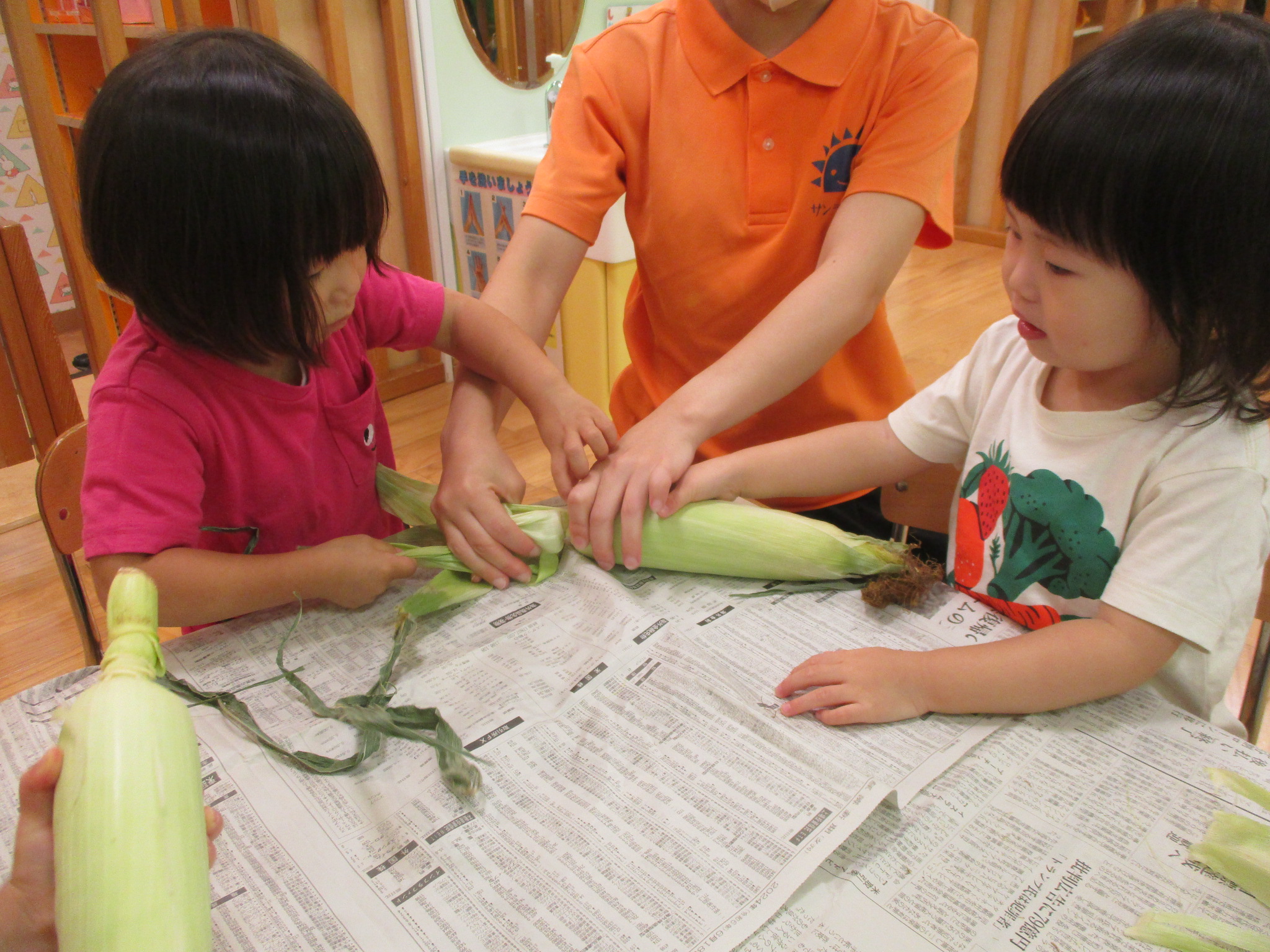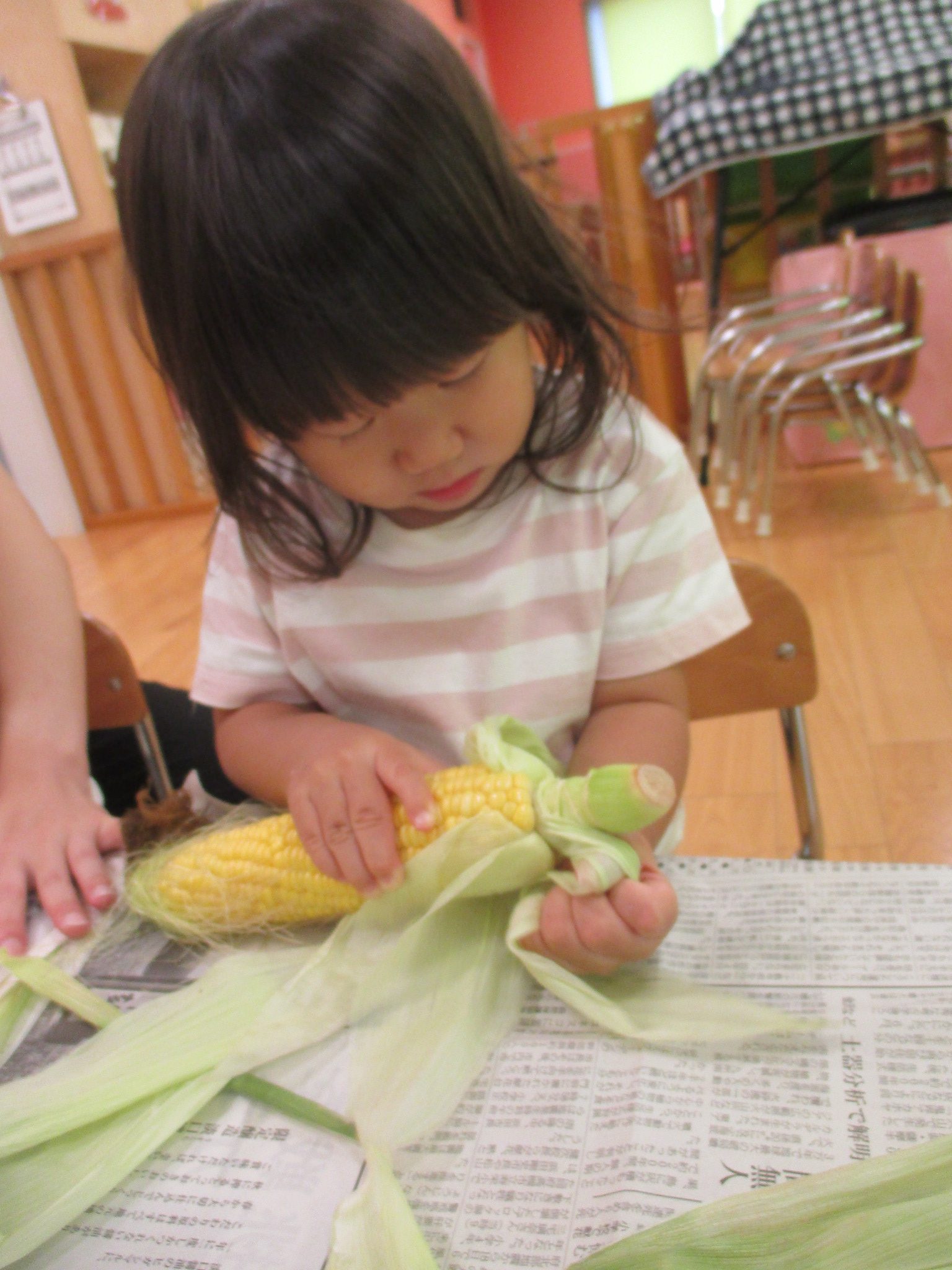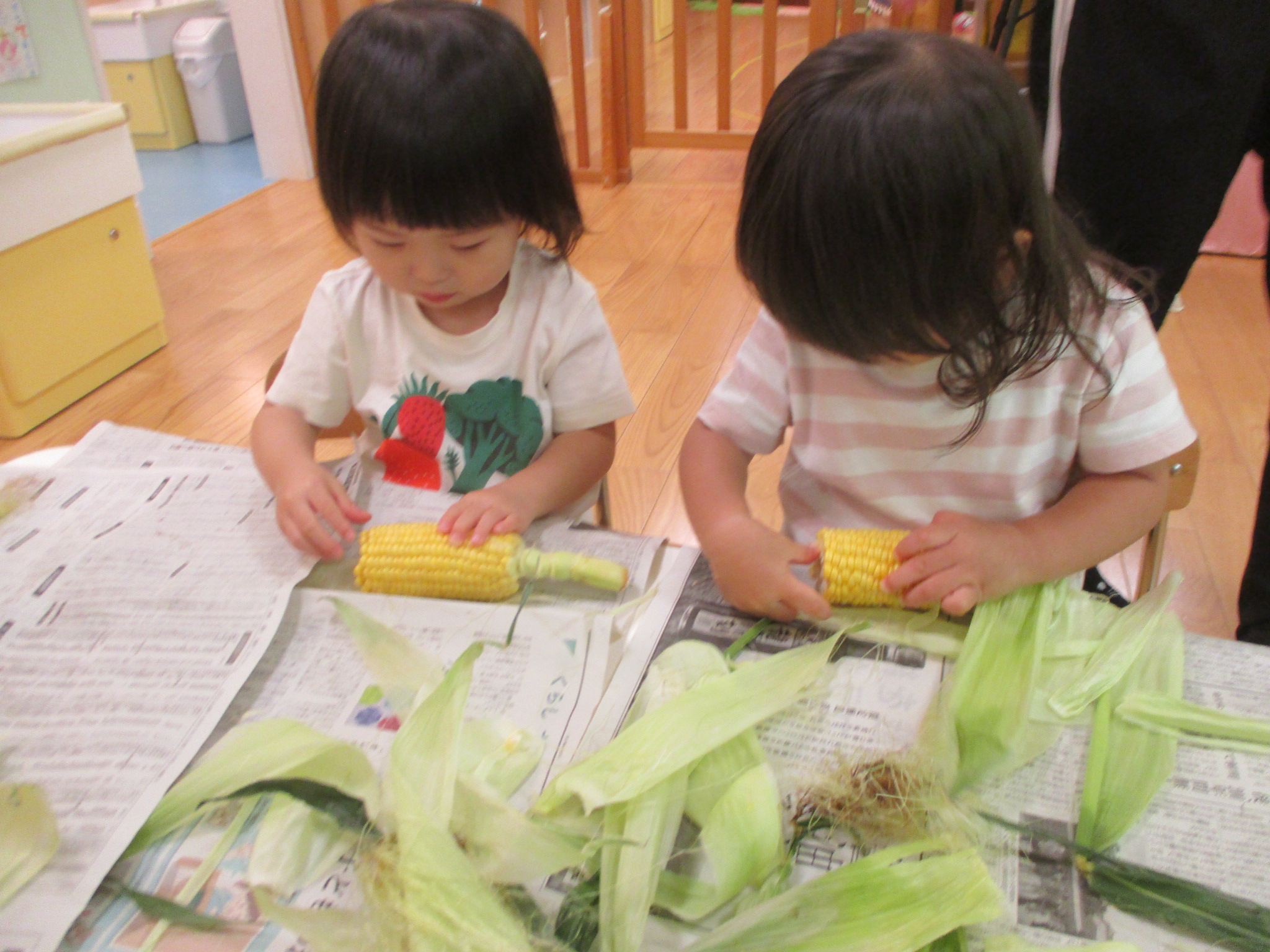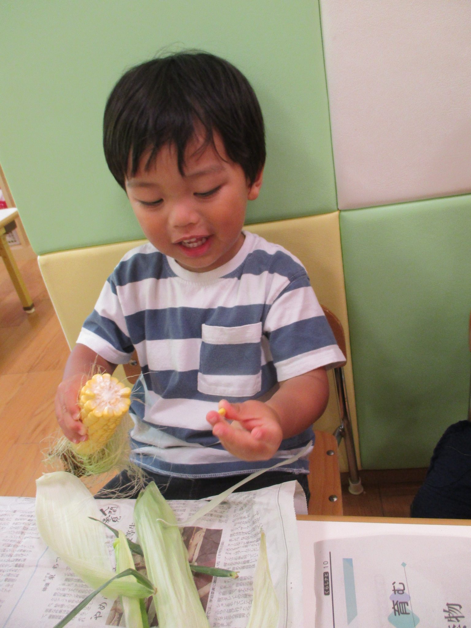 トウモロコシ🌽に触れた子どもたちの様子を