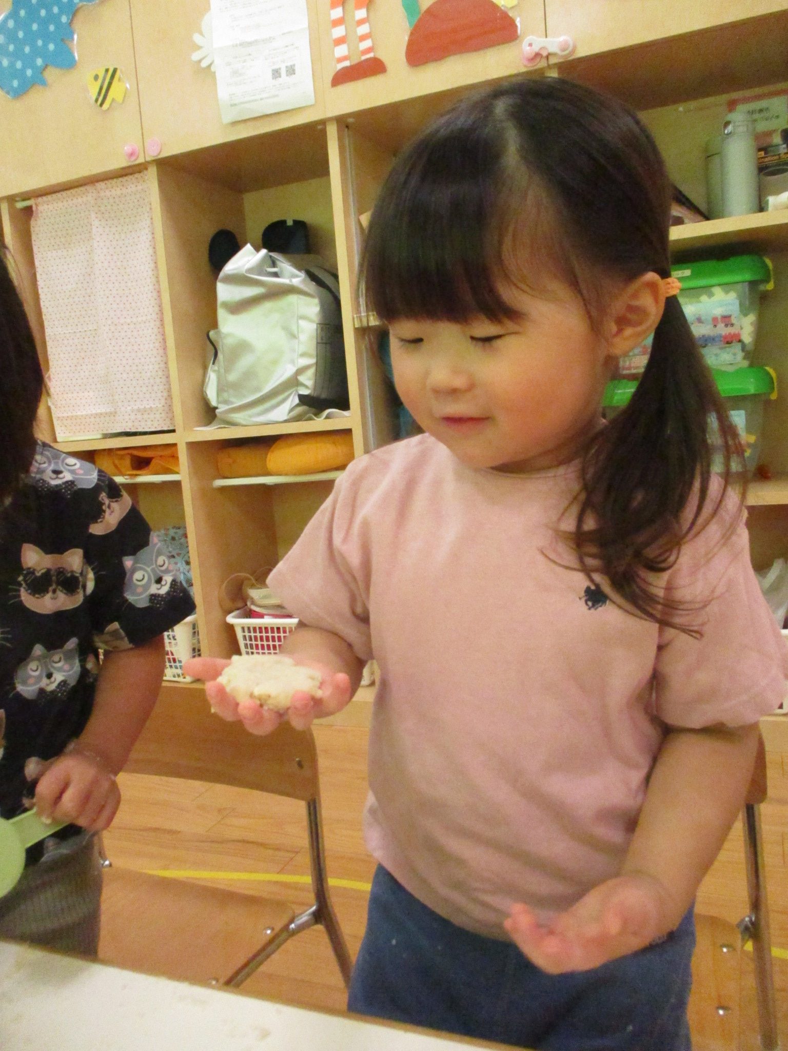 パン粉に水を足すと、粘土の様な感触に変身![]()