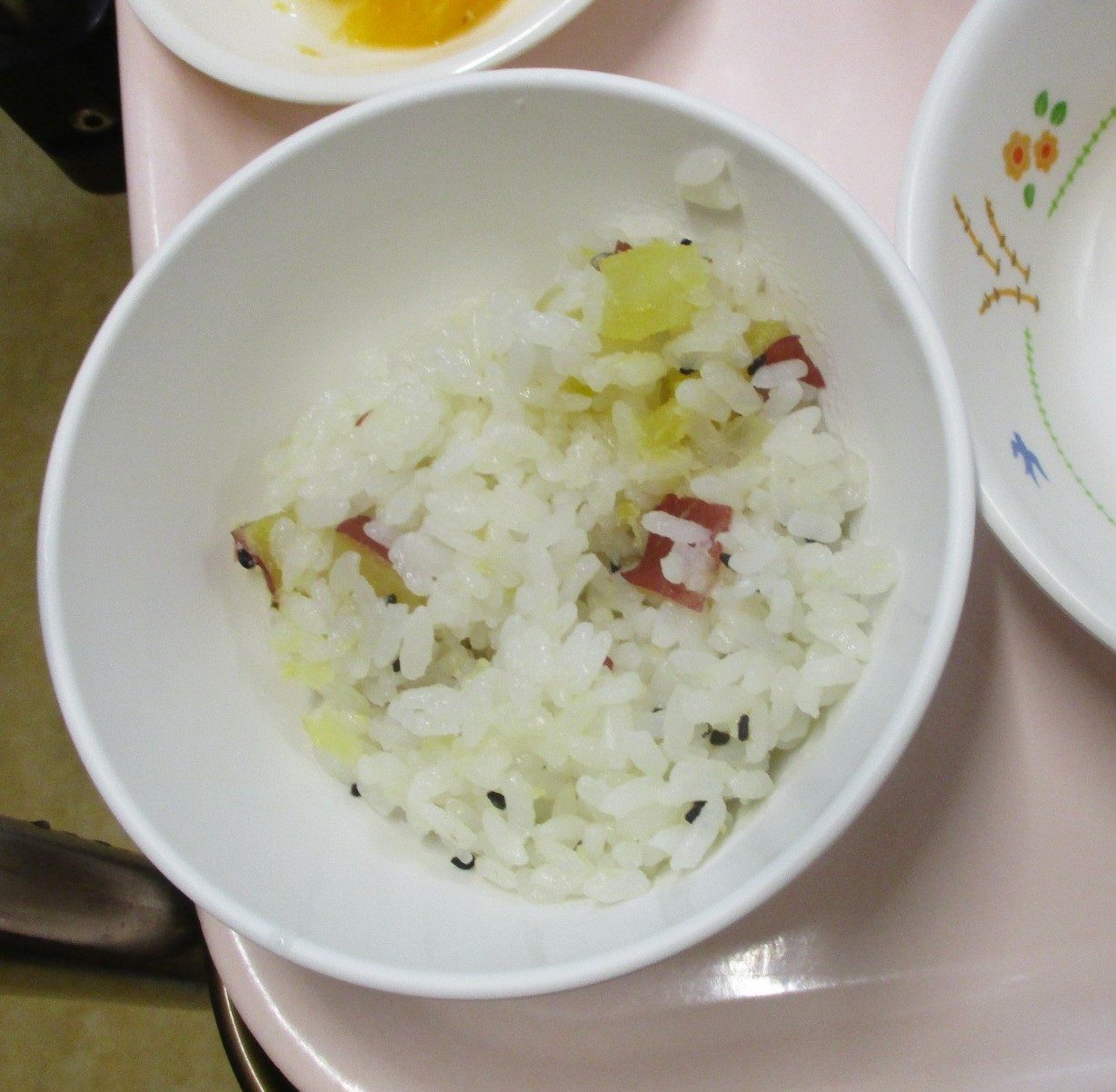 今回は、給食で提供しましたさつまいもご飯を紹介します。