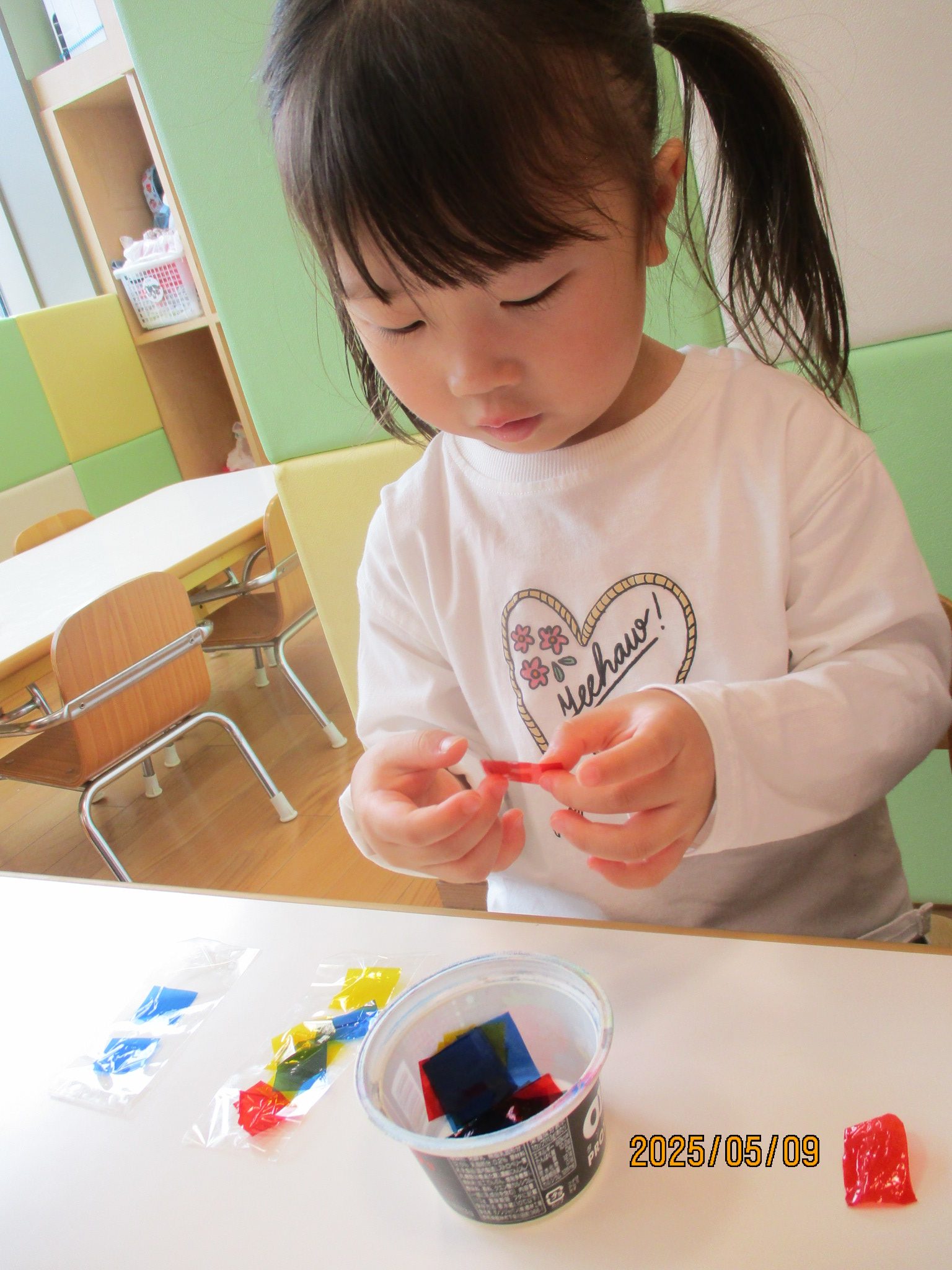 「あかにする!」「きいろにする!」と好きな色を選択してこだわりを持って完成させていました
