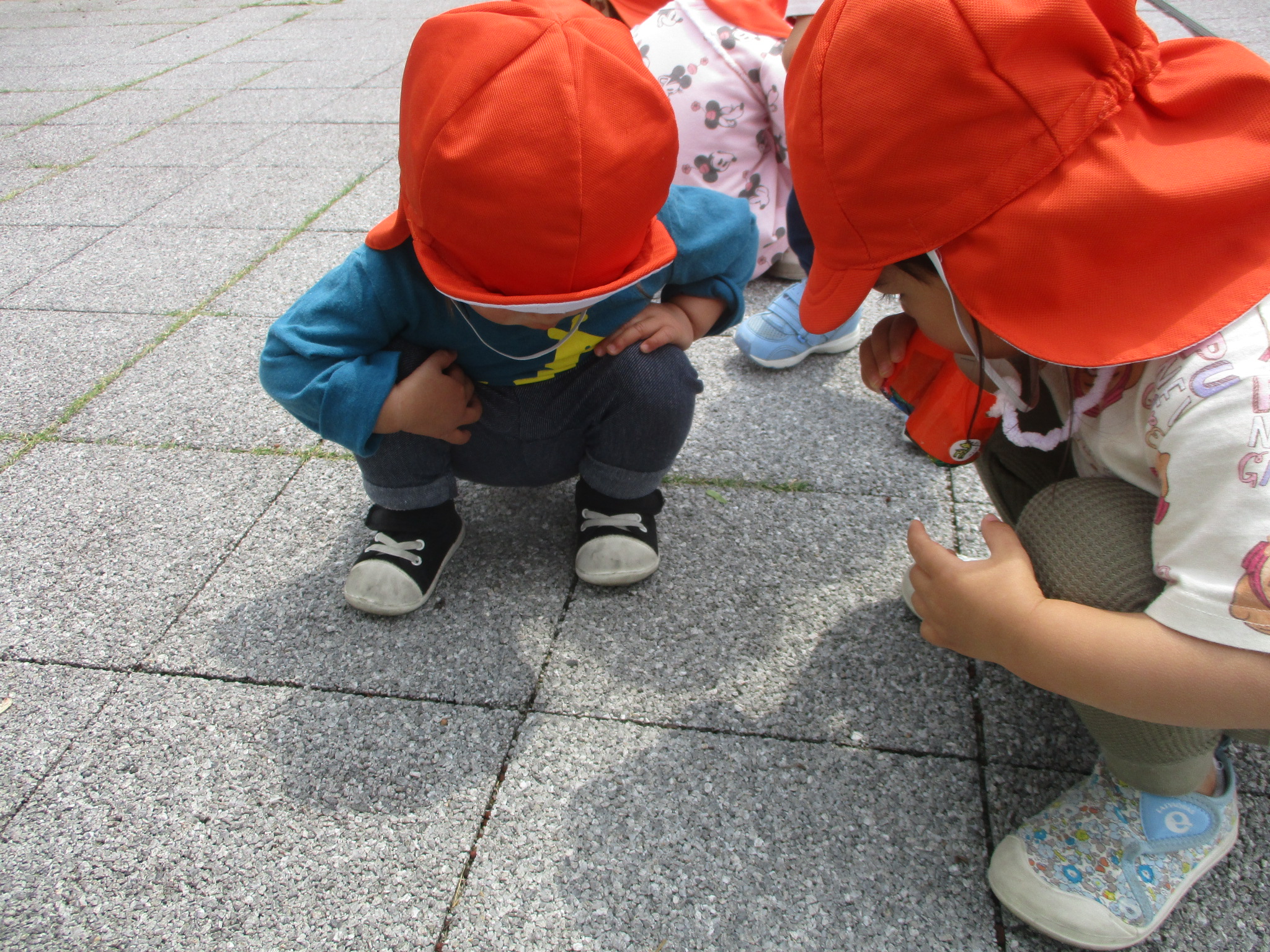 お花を見たり、お空を見たり、ダンゴムシを見たりと普段とは異なる見え方に大興奮でした