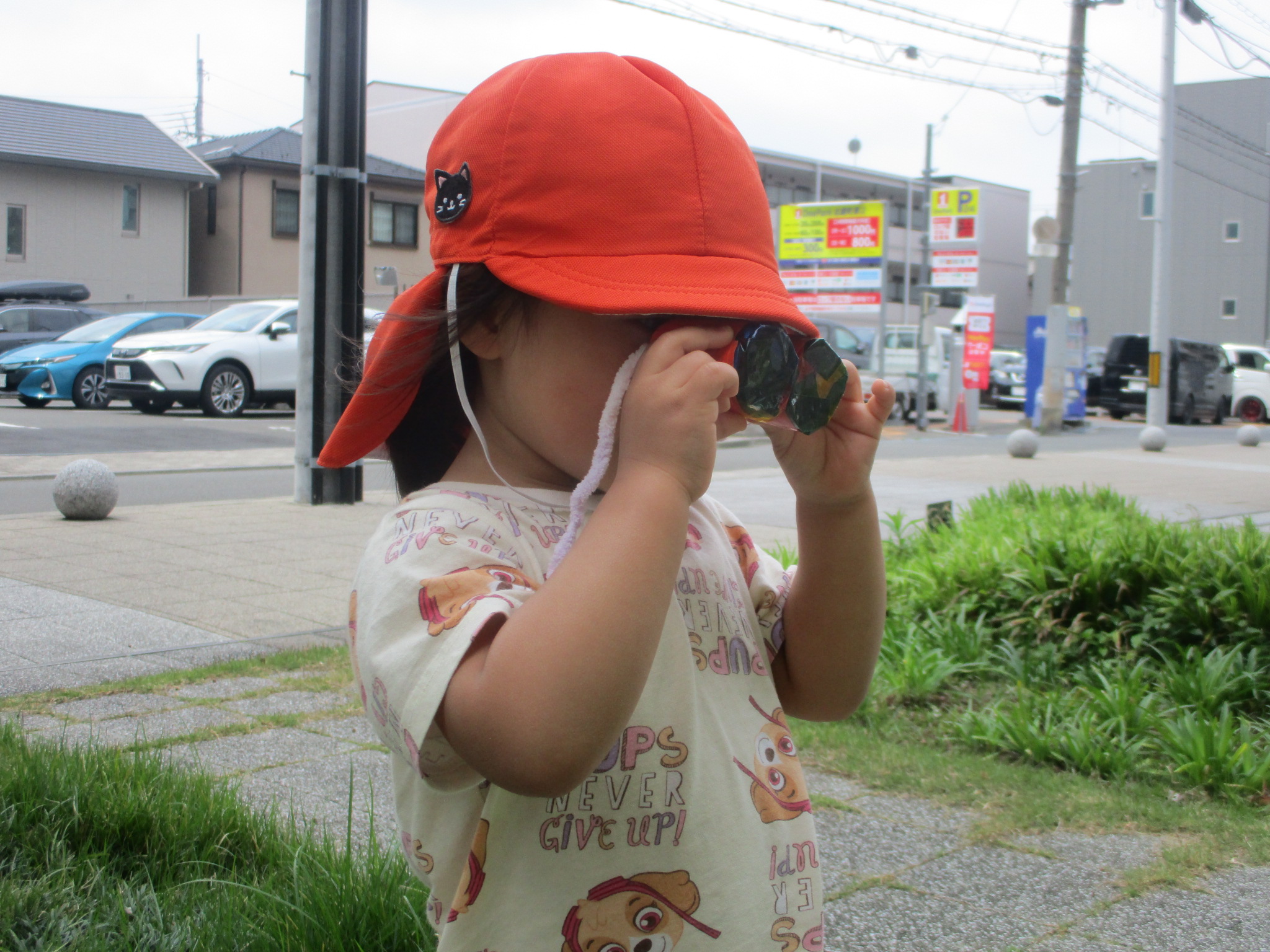 後日、完成したメガネを持って近くの広場に遊びに行きました