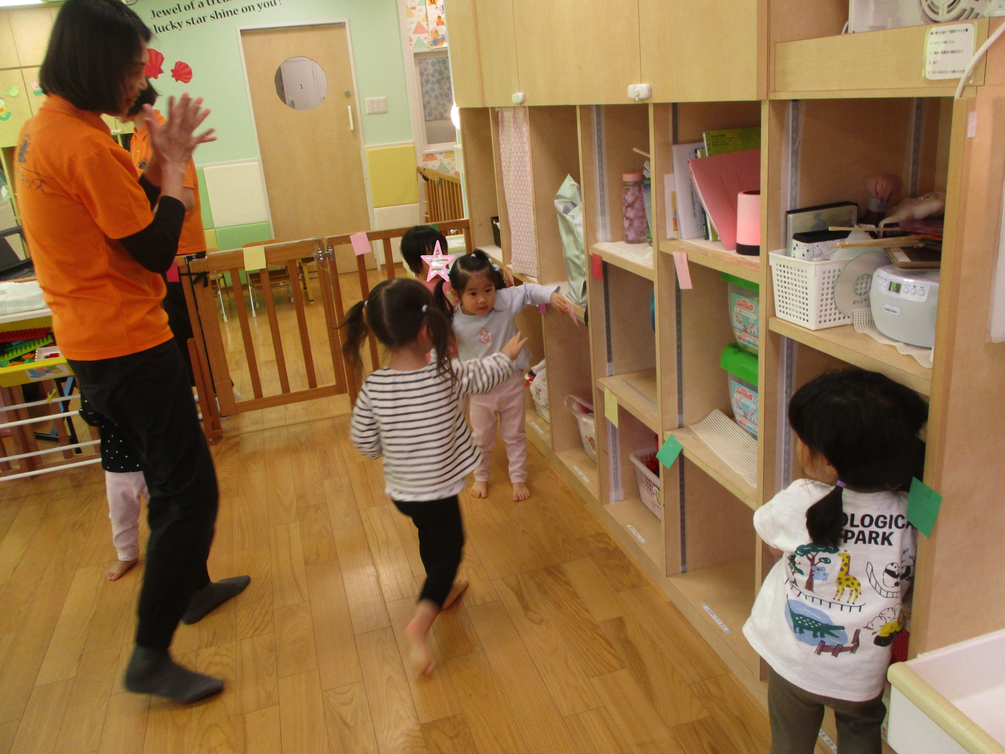 その後ピアノの音に合わせて歩き、指定された色を探すというゲームを楽しみました。