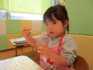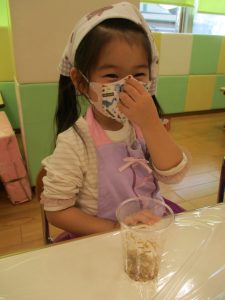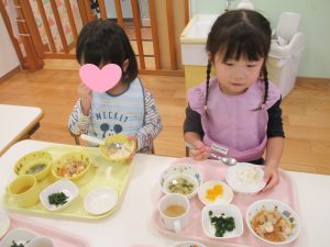 そのあとは給食で白いご飯にかけて「いただきま~す