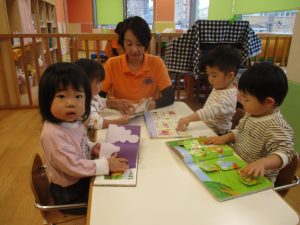 今日はあいにくの曇り空でしたので、室内で絵本の時間をたくさんとりました。