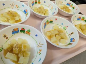 新年度が始まり3日経ちました。泣いてしまう子もたくさんいますが、在園児さんも含めてみんなで見守りながらやさしく過ごしています♡新入園児さんも、来週から給食が始まるので調理スタッフも楽しみにしています♪