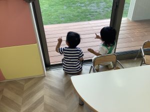 何かみつけたのでしょうか?2人で指を差してお話ししていますね?