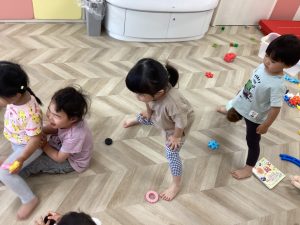 入園してから1、2ヶ月経ち、りんご組さんはお友達の名前を覚えたり、いちご、もも組さんもお友達と関わってみようとする姿が見られるようになりました?