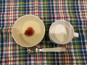 豆乳プリン苺ソースかけ 牛乳
