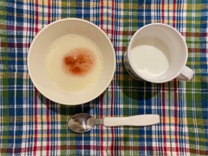 粥 すまし汁 鶏ひき肉のくず煮 ほうれん草のつぶし煮