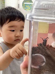 カブトムシとクワガタに触れる子も増えてきました!
