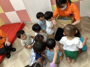 はやくちょうだいよ〜!と手を伸ばしてる子もいますね笑