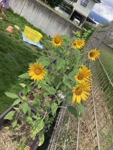 植えた頃は小さな種だったのに、今では子ども達より大きくなってます