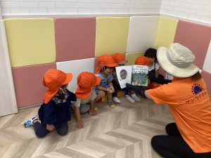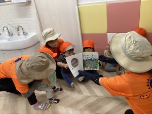 もも組さんもきらきら蜘蛛の巣に興味深々でみてますね