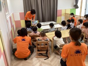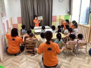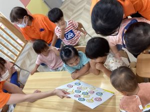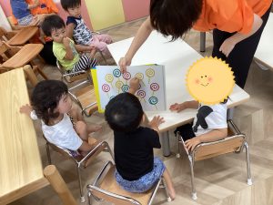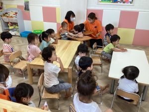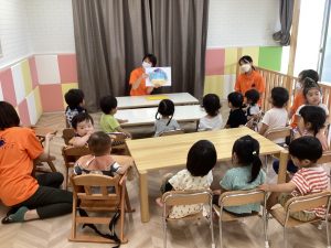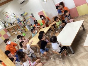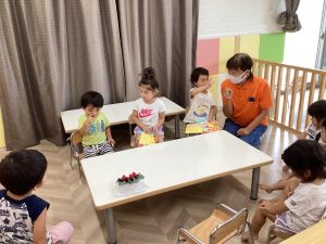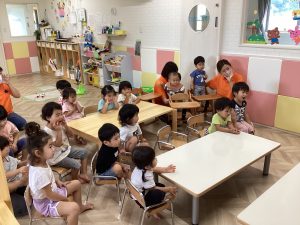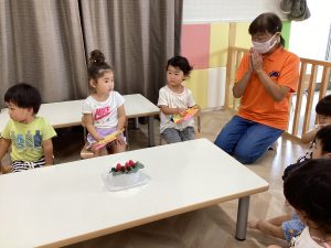 8月の誕生会の始まりは、みんなで「うみ」を歌いました