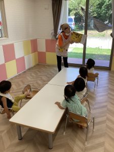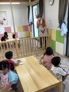 フーッと息を吹きかけて子どもたちも参加できる絵本なので人気があり、出てくる動物を覚えてネタバレする子もいるんです😄笑