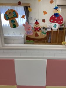 9月に入り、保育園の壁面も秋仕様になりました