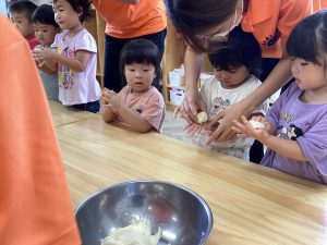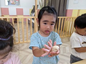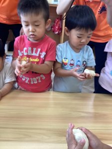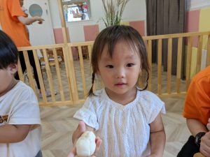 うさぎさん達が作ったように、豊科園みんなもお月見を丸めてみましたよ🎑