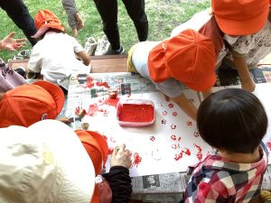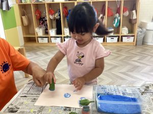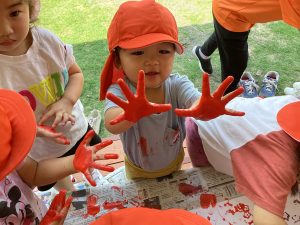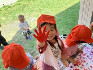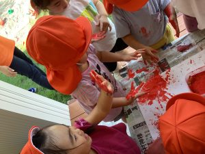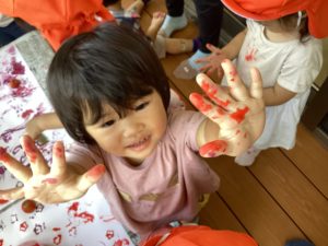 今度は野菜そっちのけで手でスタンプを楽しみましたよ♪