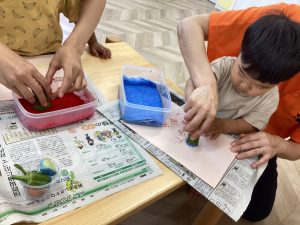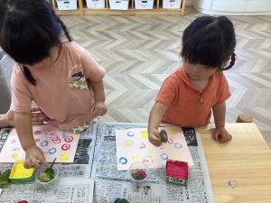 並べるように押したり重ねて色の変化を楽しんだり、逆に重ならないようにうまく余白を選んだり…